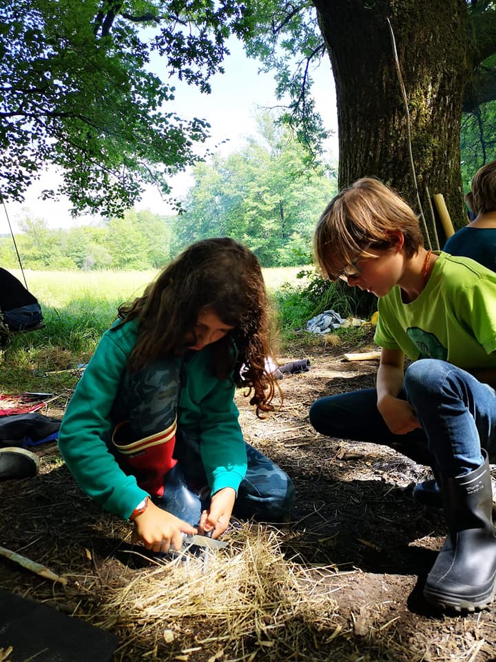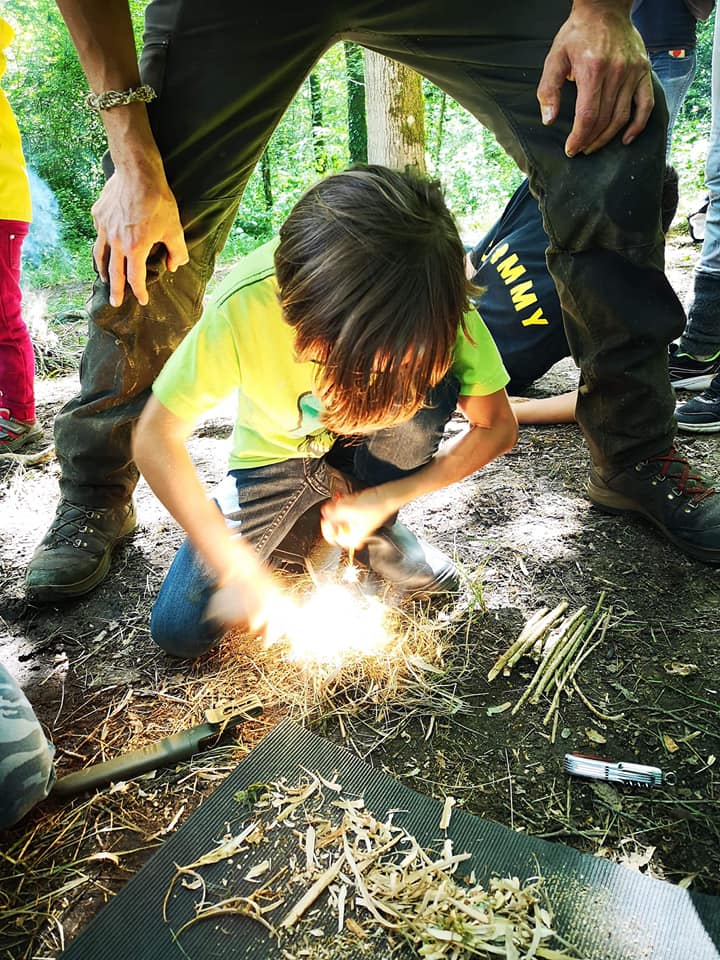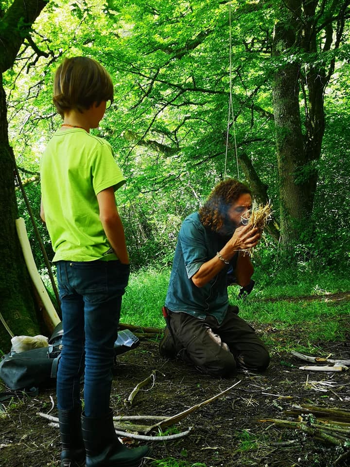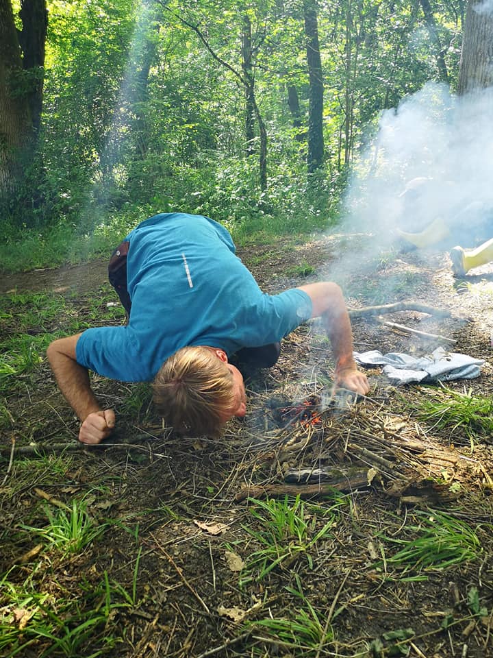 L’après-midi, pour s’offrir un peu de repos et réchauffer les cœurs, on s’est entrainés à allumer des feux, avec différentes techniques. Chacun a pu se challenger et beaucoup de petits brasiers se sont enflammés dans la joie et les cris !