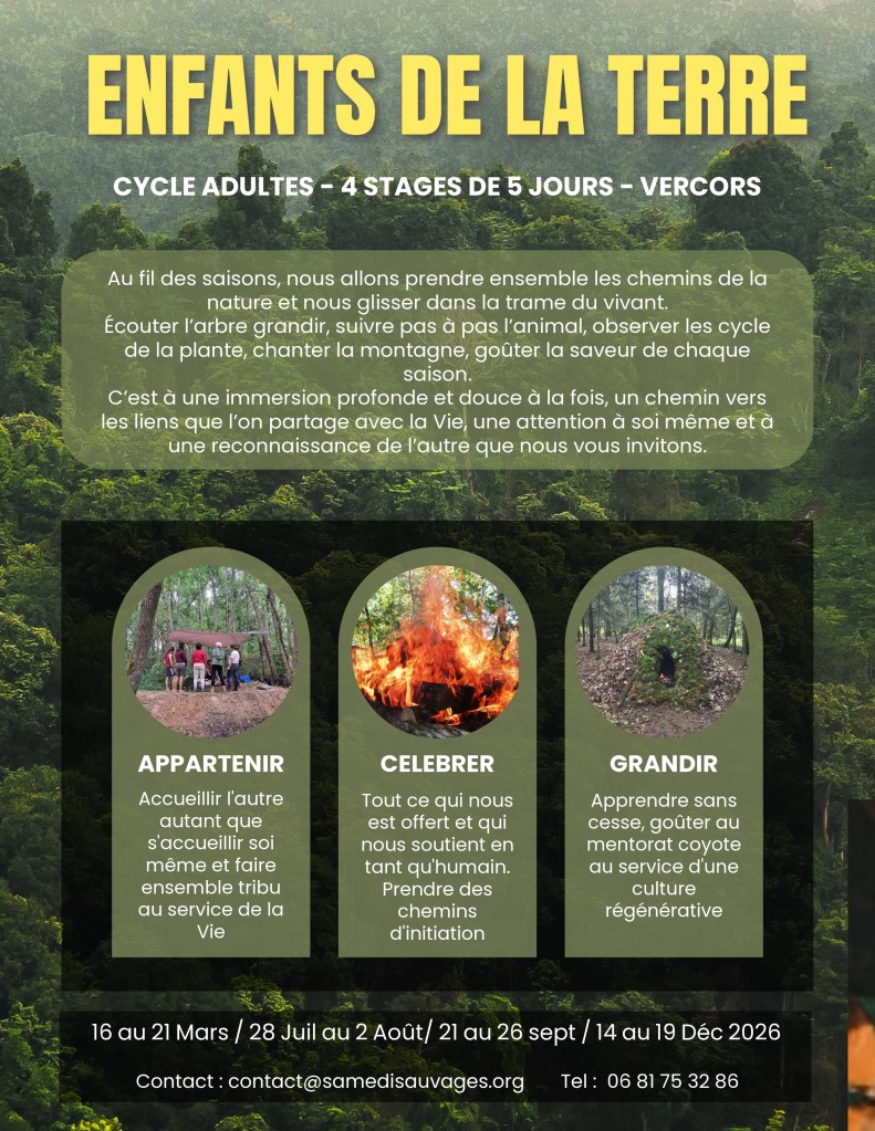 Une année durant et lors de 4 rendez vous de 5 jours, nous vous accueillerons en Vercors pour pratiquer ensemble les routines de connexion profonde à la nature issues du modèle du 8 Shields. Nous dormirons dehors et cuisinerons au feu.
