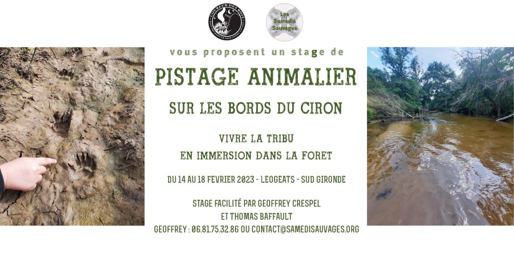 L’intention de ce stage est de vous faire partager notre passion pour le vivant et particulièrement, pour le pistage animalier. Notre passion aussi pour la vie dans les bois et pour les techniques qui permettent de s’y sentir à la maison, par tous les temps.
